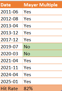 梅耶指数:历史上识别市场顶部的表现(2011–2025)